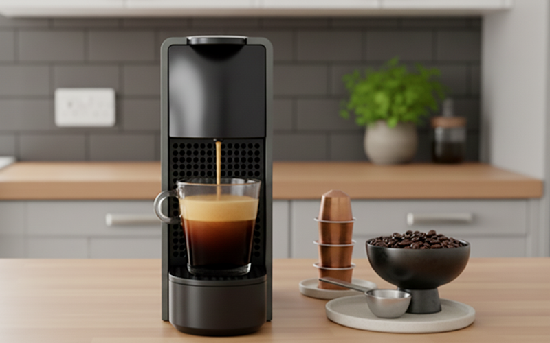 • ماكينة Nespresso: سهلة في الاستخدام وتتيح تشكيلة واسعة من الكبسولات السريعة والمتنوعة.