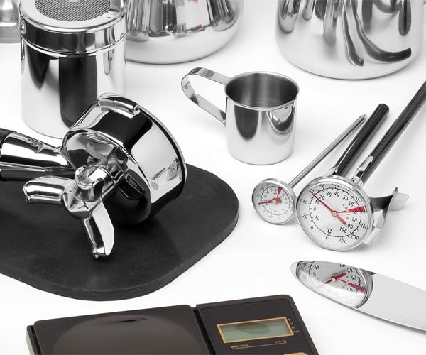 - أدوات الباريستا: تشمل العديد من الأدوات منها صناديق الإسبريسو، المكابس، مقاييس الحرارة إضافة إلى أدوات التنظيف.